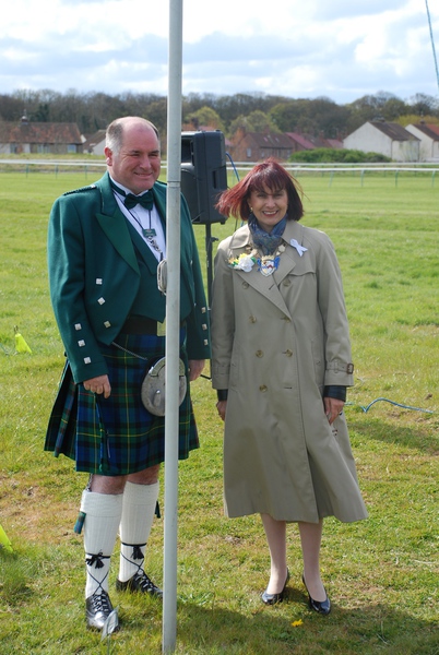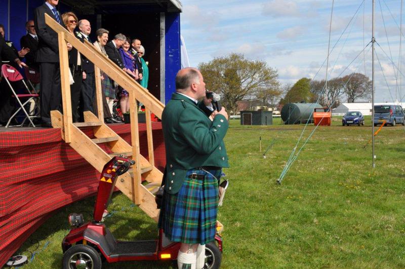 Saturday morning with the sun shining the official opening was held at 10:30am. Hamish Stuart, Scottish Caravan Club Chairman welcomed everyone to the National Rally and introduced his platform party which included all Scottish Division Council, John & Llinos Gass, Alex & Gina Davidson (All Caravan Club), Dave Grover and Dave Robinson who are Honorary Members of The Scottish Caravan Club, the rally was officially opened by Helen Moonie Provost for Ayr. Everyone was welcomed by John Gass Executive Member of The Caravan Club. Hamish then gave a breakdown of those attending, Past Presidents of Scottish Division attending were Norman Douglas, Kenny Robertson Margaret Devine, Fiona Murray and Ian Maclean